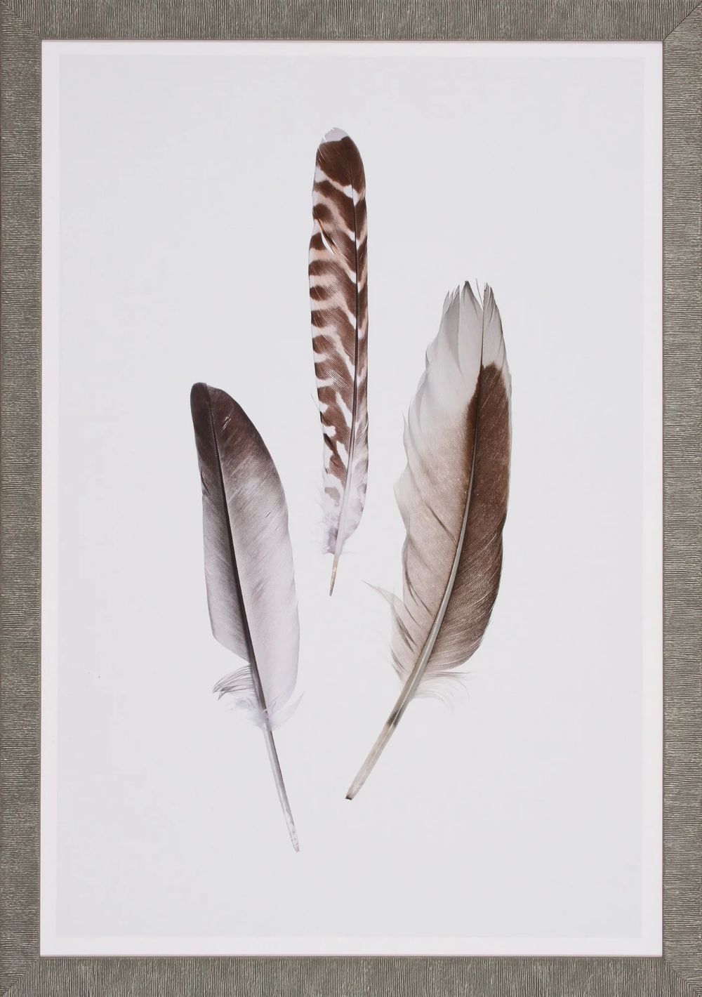 The Alan Wall Art celebrates the delicate beauty of a trio of feathers, rendered in vibrant hues that seem to come alive against a natural background. The composition highlights the intricate textures and subtle color gradations of each feather, creating a sense of movement and grace. Presented as a Giclée print within a textured gunmetal frame, this artwork brings sophisticated depth, contemporary elegance, and a touch of refined artistry to any interior, making it a striking focal point for living rooms, studies, or gallery-inspired spaces.