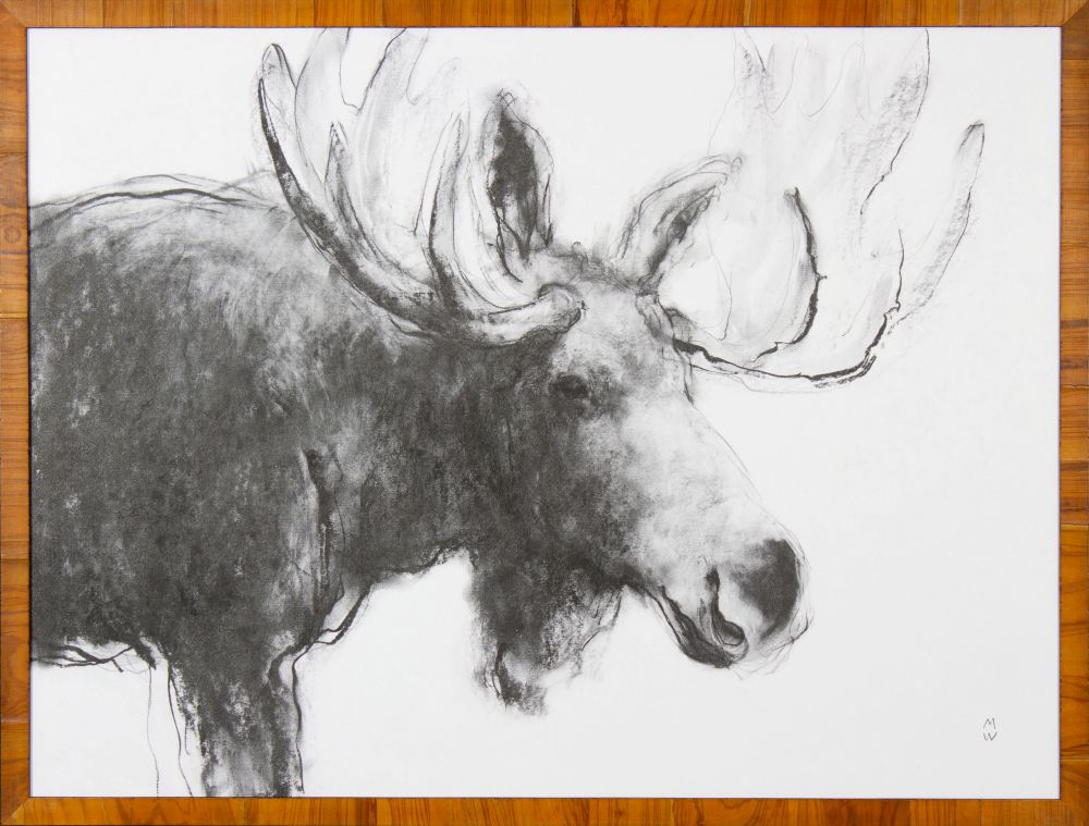 The Eddie Wall Art presents a striking black-and-white sketch of the upper half of a moose, capturing the strength and majesty of this iconic creature with bold, precise lines and subtle shading. The monochromatic palette emphasizes form, texture, and presence, creating a composition that is both powerful and sophisticated. Housed in a rich brown frame, this artwork brings a refined, natural elegance to any interior, making it a commanding focal point for living rooms, studies, or gallery-inspired spaces.