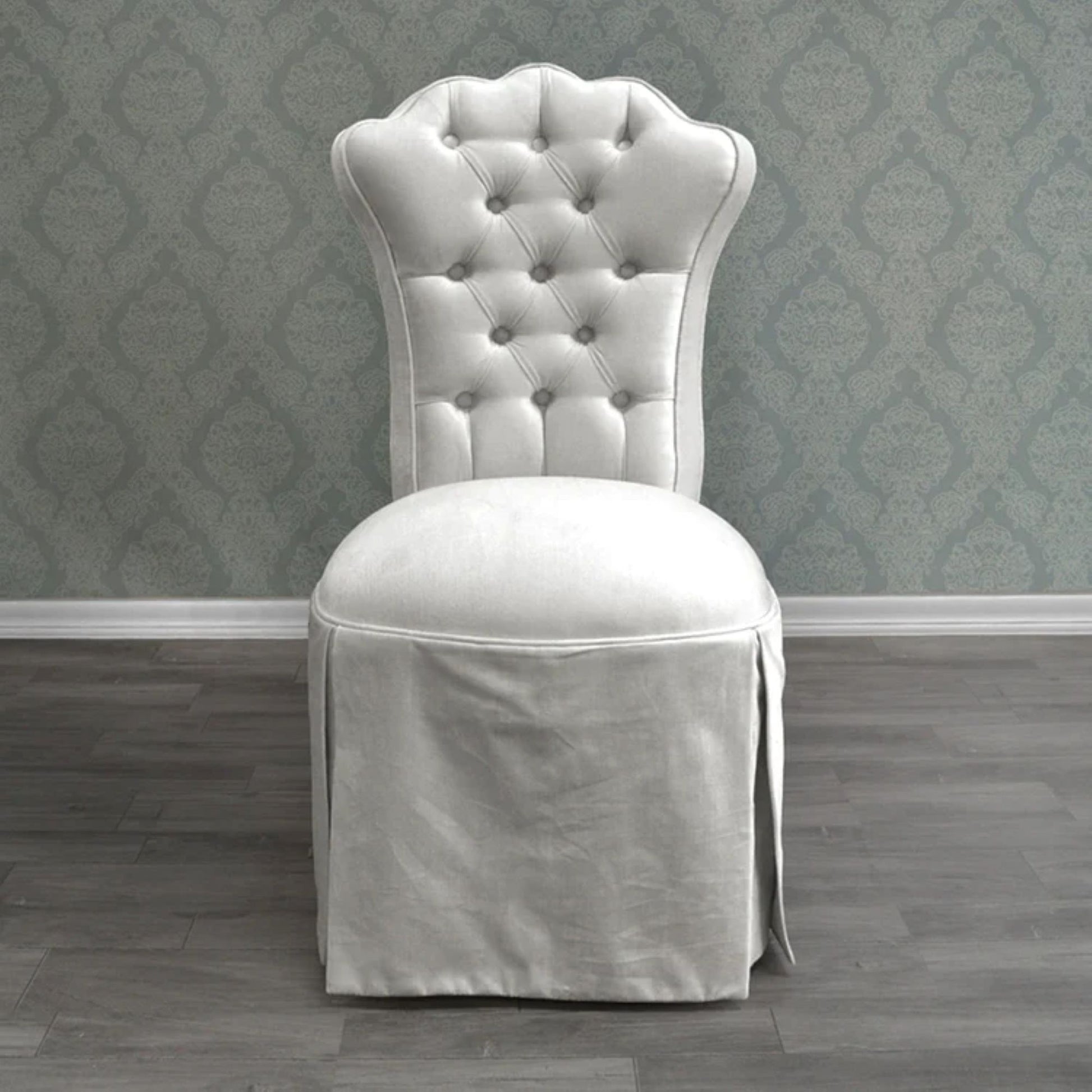 Bring grace, style, and comfort to your vanity or dressing area with the Stella Vanity Chair. Handmade in America, this chair features luxurious velvet upholstery, an elegant skirt, and refined proportions—all coming together in a made‑to‑order piece that feels both chic and personal.